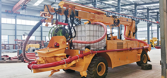 3、同步速凝劑添加采用進口軟管泵,液壓馬達驅(qū)動,電比例流量閥調(diào)節(jié)轉(zhuǎn)速以達到調(diào)節(jié)流量的目的,液晶顯示和觸屏設置速凝劑添加比例,且在屏幕和器上均可隨時修改設置,速凝劑的添加量緊隨砼的泵送量同步變化而保持添加比例按設定值運行,這些均由可編程控制器控制。由此可實現(xiàn)對速凝劑添加量的控制,以達到效果,回彈和節(jié)約速凝劑的目的。機器上配有容積為1.0m³的耐腐蝕塑料材質(zhì)的速凝劑容器,速凝劑軟管泵也可從外部容器中抽吸速凝劑,根據(jù)實際情況可方便地進行切換。