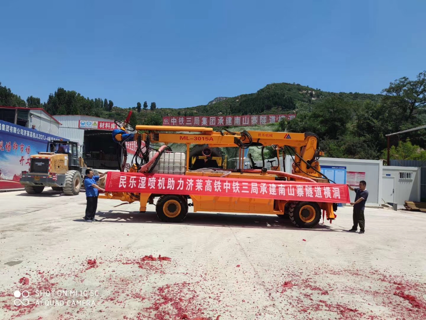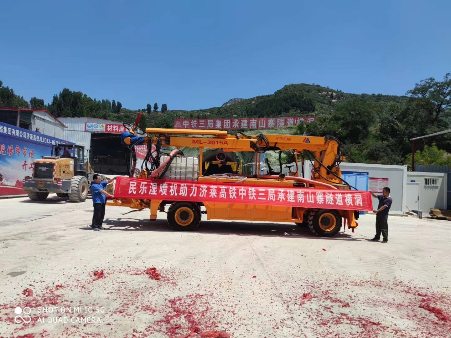 民樂機械濕噴臺車機械手助力濟萊高鐵中鐵三局承建南山寨sui道橫洞!
